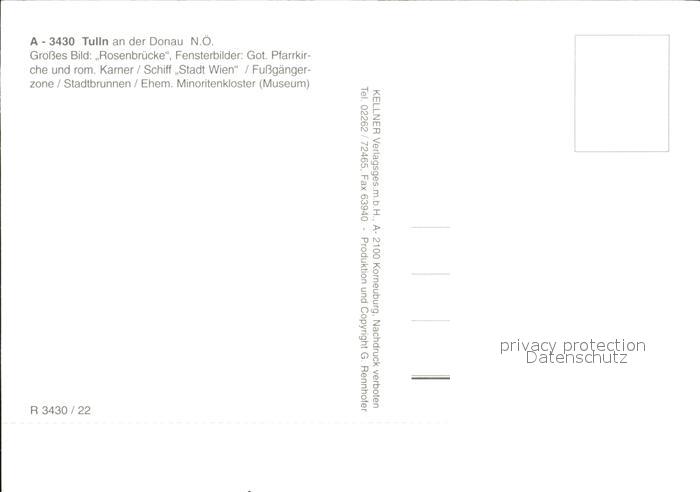 72430264 Tulln Donau Blumenstadt Rosenbruecke Gotische Pfarrkirche Schiff Stadt Wien postalisch nicht gelaufen Erhaltung siehe scans KatCode: 11390126032135