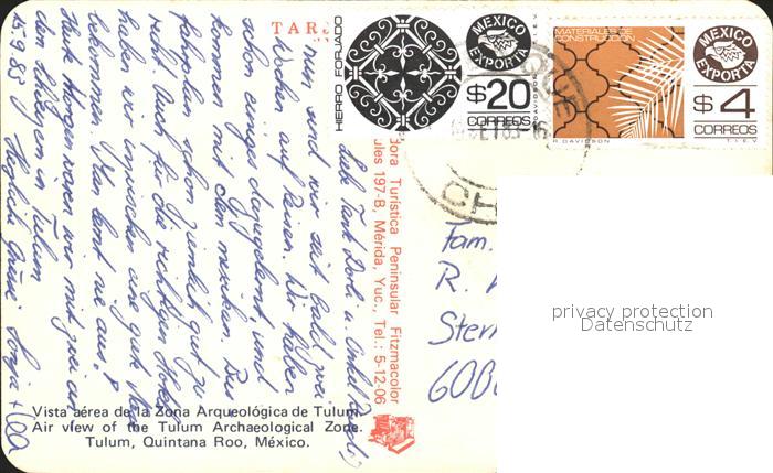 alte Postkarte Tulum Vista aerea de la Zona Arqueologica postalisch gelaufen Erhaltung siehe scans