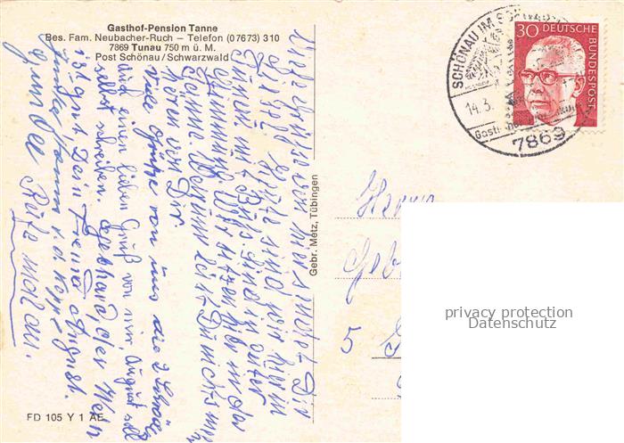 74026265 alte Postkarte Tunau Schwarzwald Gasthof Pension Tanne Hallenbad postalisch gelaufen Erhaltung siehe scans [FriedD77] KatCode: 11110008336089