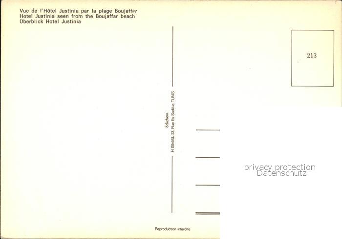 Tunesien Fliegeraufnahme Vue Hotel Justina par la Plage Boujaffer postalisch nicht gelaufen Erhaltung siehe scans
