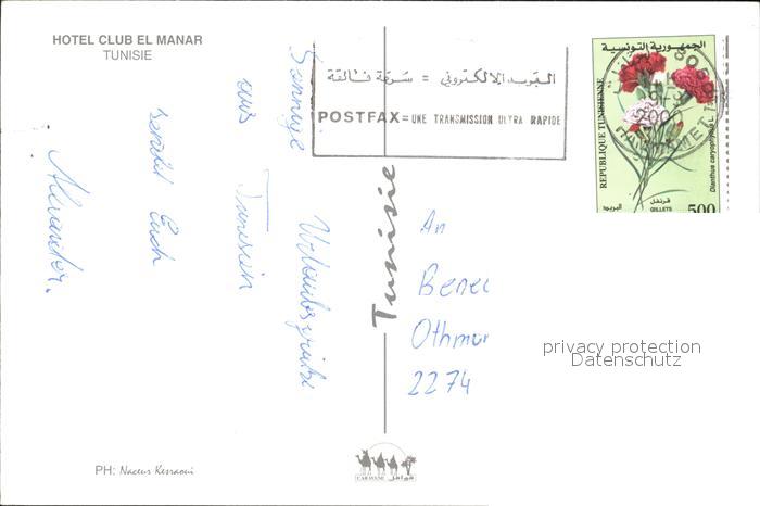 alte Postkarte Tunesien Hotel Club el Manar postalisch gelaufen Erhaltung siehe scans