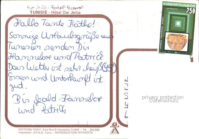 alte Postkarte Tunesien Hotel Dar Jerba Segelboote postalisch gelaufen Erhaltung siehe scans