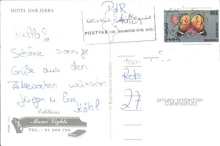 old postcard Tunesien Hotel Dar Jerba postalisch gelaufen Erhaltung siehe scans