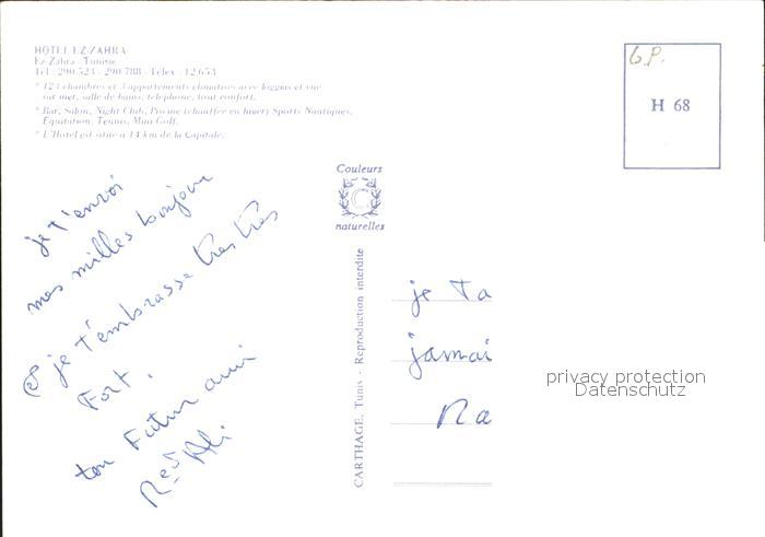Tunesien Hotel Ez Zahra postalisch nicht gelaufen Erhaltung siehe scans