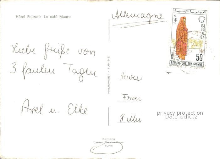 old postcard Tunesien Hotel Fourati Le cafe Maure postalisch gelaufen Erhaltung siehe scans