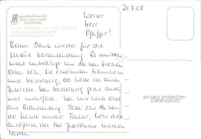 Tunesien Hotel Skaes Palace International postalisch nicht gelaufen Erhaltung siehe scans