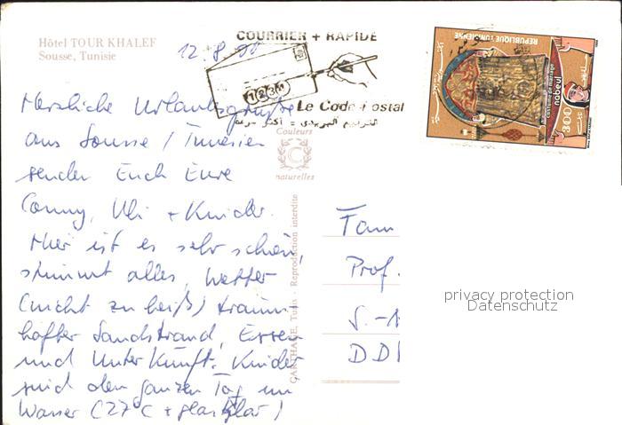 old postcard Tunis Hotel Tour Khalaf postalisch gelaufen Erhaltung siehe scans