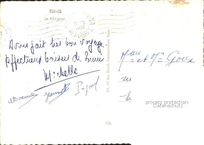 alte Postkarte Tunis Le Minaret postalisch gelaufen Erhaltung siehe scans