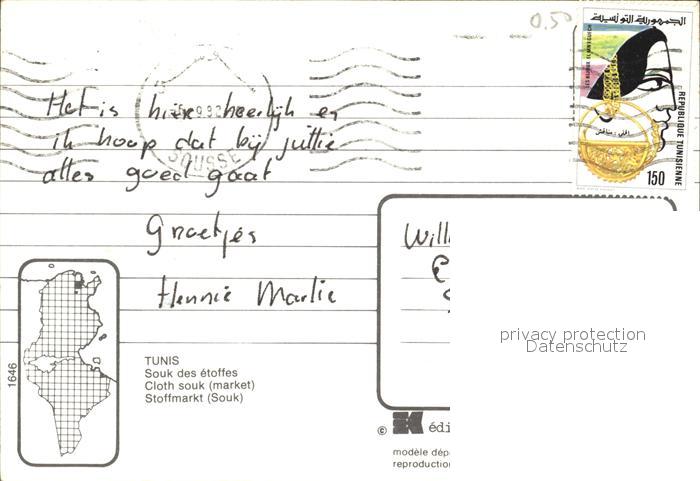 old postcard Tunis Markt Souk postalisch gelaufen Erhaltung siehe scans
