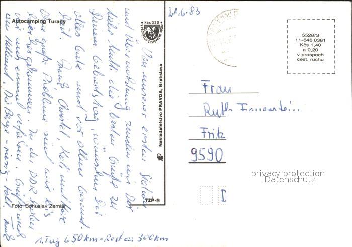 old postcard Turany Autocamping Turany Details postalisch gelaufen