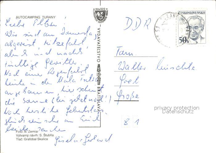 old postcard Turany Autocamping Turany Schranke Zeltplatz Wasserfall postalisch gelaufen Erhaltung siehe scans