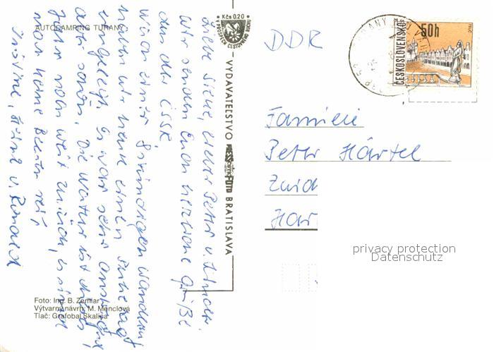 old postcard Turany Autocamping Wasserfall postalisch gelaufen Erhaltung siehe scans [LiesaD40]