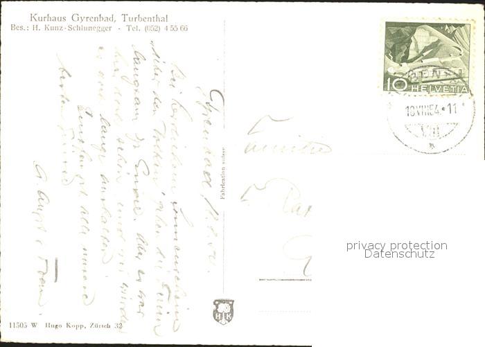 11635606 alte Postkarte Turbenthal Kurhaus Gyrenbad Garten postalisch gelaufen Erhaltung siehe scans KatCode: 11470260910530