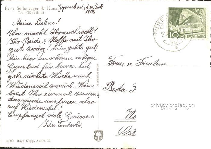 11658028 alte Postkarte Turbenthal Kurhaus Gyrenbad Schlunegger und Kunz postalisch gelaufen Erhaltung siehe scans KatCode: 11470260910530