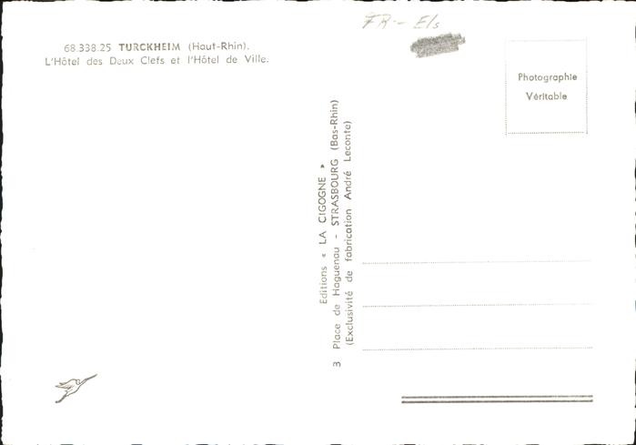 11360313 Turckheim Haut Rhin Hotel des Deux Clefs Hotel de Ville Fachwerkhaus KatCode 11170068268338