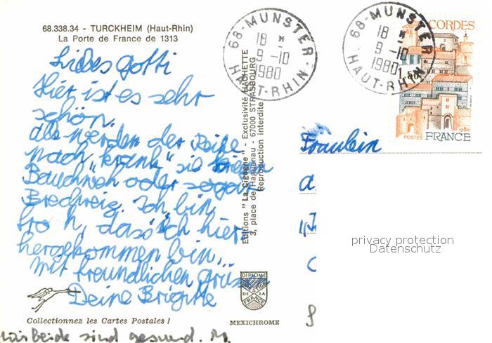 12619280 carte postale Turckheim Haut Rhin La Porte de France de 1313 Restaurant postalisch gelaufen Erhaltung siehe scans [FriedD77] KatCode: 11170068268338