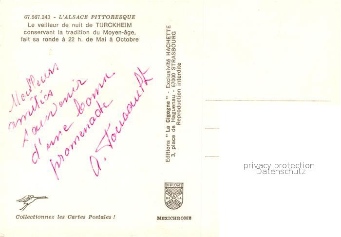 Turckheim Haut Rhin Veilleur de nuit de la ville Tradition du Moyen-âge postalisch nicht gelaufen Erhaltung siehe scans [FriedD77]