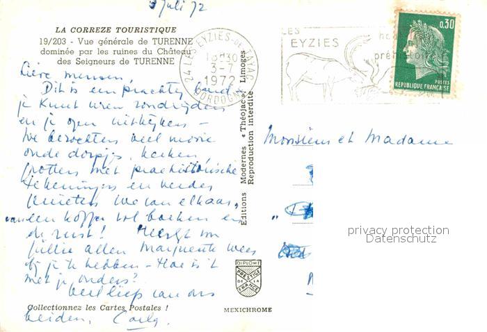 12896503 carte postale Turenne Fliegeraufnahme Chateau des Seigneurs postalisch gelaufen Erhaltung siehe scans [LiesaD40] KatCode: 11170019119273