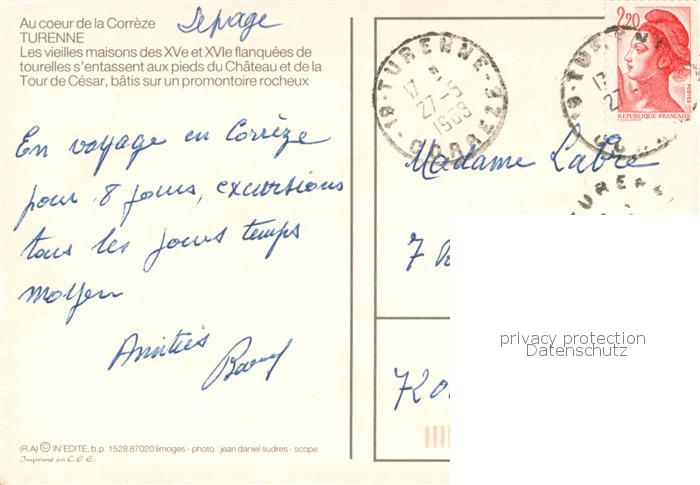 13786769 Turenne Vieilles maisons des XVe et XVIe siècles Chateau postalisch gelaufen Erhaltung siehe scans [FriedD77] carte postale Frie Katcode 11170019119273