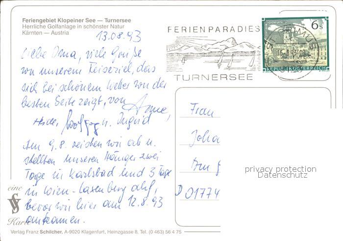 72377752 alte Postkarte Turnersee Klopeiner See Luftaufnahme postalisch gelaufen Erhaltung siehe scans KatCode: 11390213020813