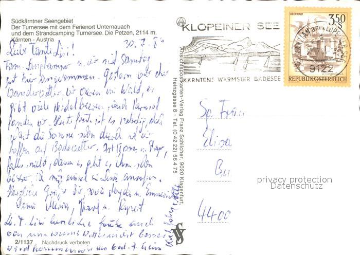 72059016 alte Postkarte Turnersee Unternauach Strandcamping Petzen postalisch gelaufen Erhaltung siehe scans KatCode: 11390213020813