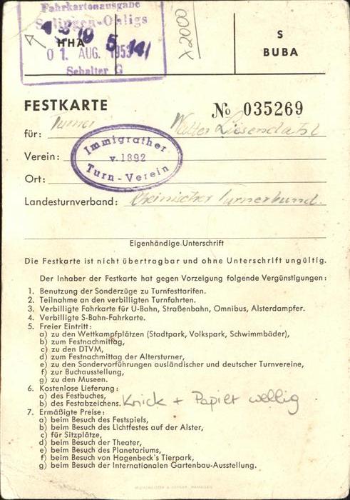 41414238 Turnfest Festkarte Hamburg KatCode 22520000001500