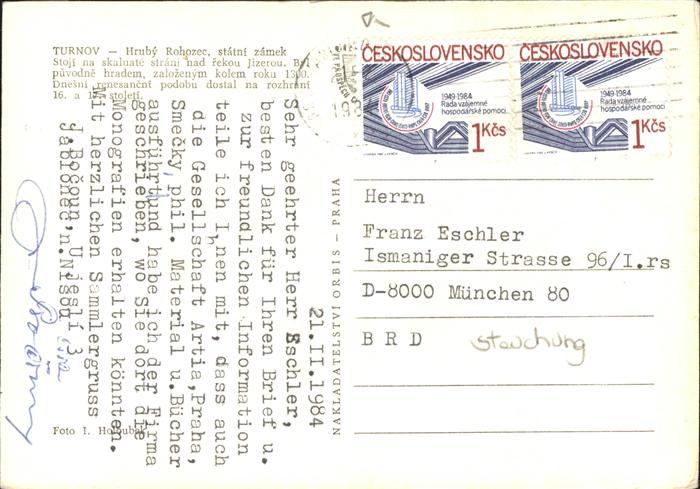 old postcard Turnov Schloss Hruby Rohozec postalisch gelaufen