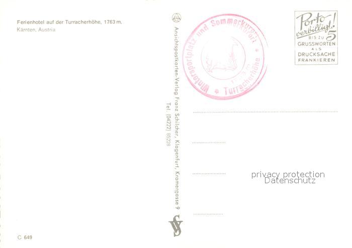 73168638 alte Postkarte Turracher Hoehe Ferienhotel postalisch gelaufen Erhaltung siehe scans [WerneD78] KatCode: 11390213020508