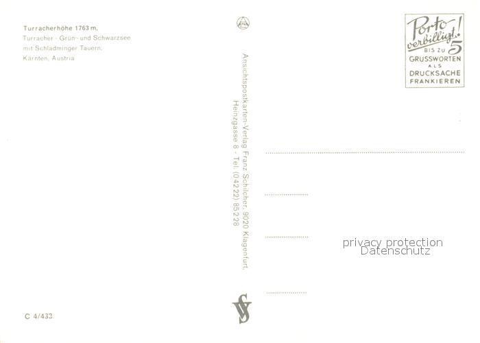 73246276 Turracher Hoehe Gruensee Schwarzsee mit Schladminger Tauern Fliegeraufnahme postalisch nicht gelaufen Erhaltung siehe scans [FriedD77] KatCode: 11390213020508