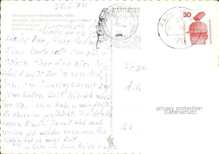 72420149 alte Postkarte Turracher Hoehe Hotel Hochschober postalisch gelaufen Erhaltung siehe scans KatCode: 11390213020508