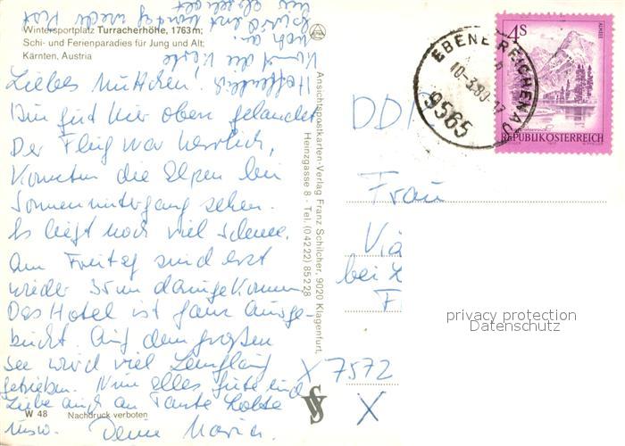 73630521 alte Postkarte Turracher Hoehe Ski und Ferienparadies Panorama postalisch gelaufen Erhaltung siehe scans [WerneD78] KatCode: 11390213020508