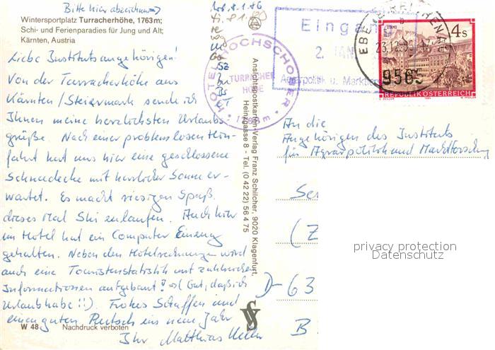72772108 alte Postkarte Turracher Hoehe Skigebiet postalisch gelaufen Erhaltung siehe scans [LiesaD40] KatCode: 11390213020508