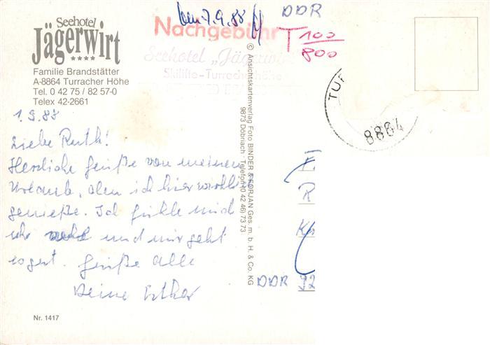 73905740 alte Postkarte Turrachersee Turracherhoehe 1783m Kaernten Steiermark Seehotel Jaegerwirt postalisch gelaufen Erhaltung siehe scans [WerneD78] KatCode: 11390213020508