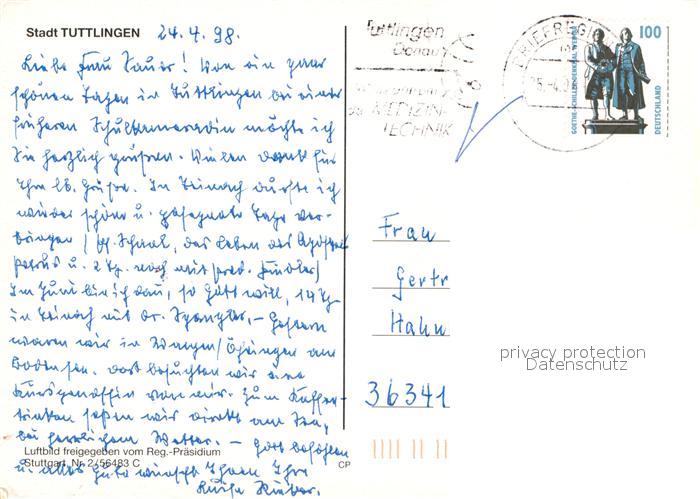 73003373 alte Postkarte Tuttlingen Fliegeraufnahme postalisch gelaufen Erhaltung siehe scans [KathaD81] KatCode: 11110008327050