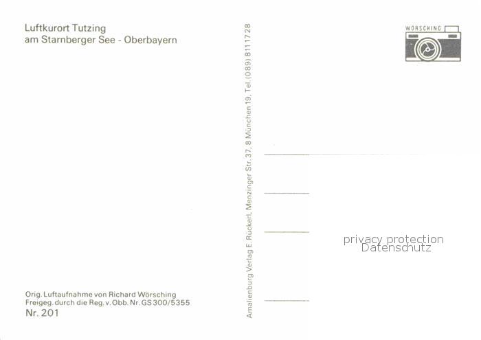 72721975 Tutzing Fliegeraufnahme am Starnberger See postalisch nicht gelaufen Erhaltung siehe scans [LiesaD40] KatCode: 11110009188141