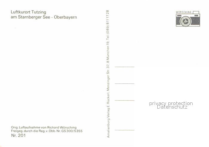 72791243 Tutzing Fliegeraufnahme am Starnberger See postalisch nicht gelaufen Erhaltung siehe scans [LiesaD40] KatCode: 11110009188141