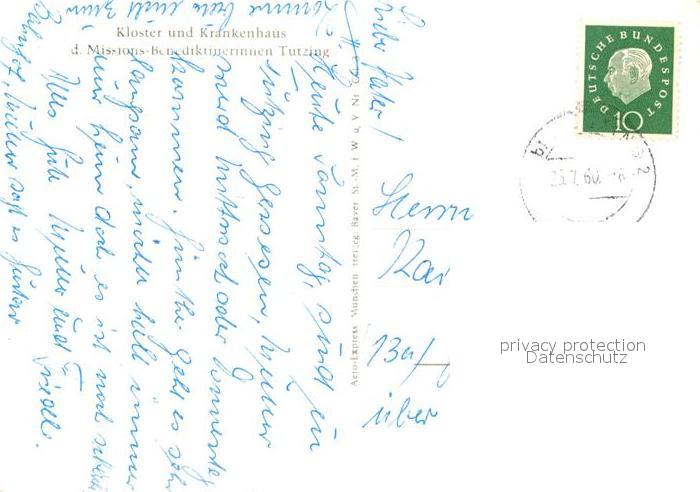 73284921 alte Postkarte Tutzing Fliegeraufnahme Kloster und Krankenhaus postalisch gelaufen Erhaltung siehe scans [LiesaD40] KatCode: 11110009188141