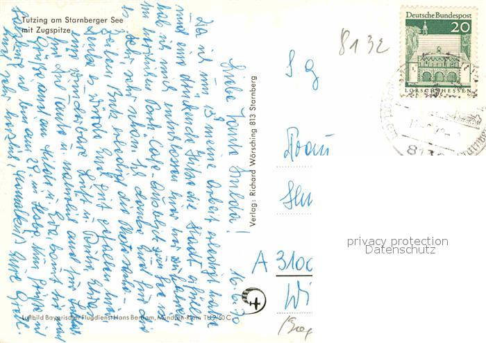 72883636 alte Postkarte Tutzing Fliegeraufnahme mit Zugspitze postalisch gelaufen Erhaltung siehe scans [AndreD76] KatCode: 11110009188141