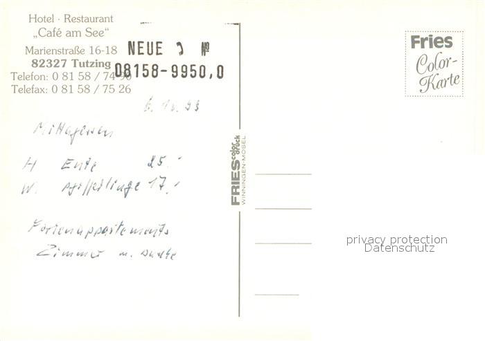 73662296 Tutzing Hotel Restaurant Cafe am See Terrasse Seglerhafen Starnberger See postalisch nicht gelaufen Erhaltung siehe scans [FriedD77] KatCode: 11110009188141