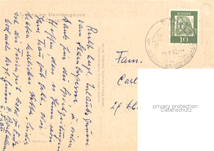 73711672 alte Postkarte Tutzing Starnberger See Fliegeraufnahme mit Zugspitze postalisch gelaufen Erhaltung siehe scans [WerneD78] KatCode: 11110009188141