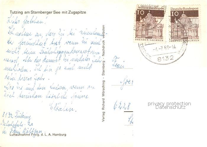 73127310 alte Postkarte Tutzing Starnberger See Zugspitze Fliegeraufnahme postalisch gelaufen Erhaltung siehe scans [PaolaD17] KatCode: 11110009188141