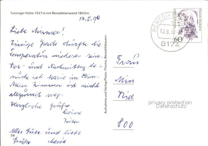 72241548 alte Postkarte Tutzingerhuette mit Benediktenwand Bayerische Voralpen postalisch gelaufen Erhaltung siehe scans KatCode: 11110009188141
