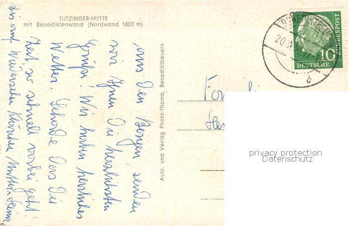 73047638 alte Postkarte Tutzingerhuette mit Benediktenwand postalisch gelaufen Erhaltung siehe scans [WerneD78] KatCode: 11110009188141