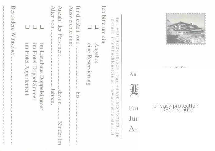 72900150 Tux Sporthotel Hoehlenstein postalisch nicht gelaufen Werbekarte (keine Postkarte) Erhaltung siehe scans [LiesaD40] KatCode: 11390335070934