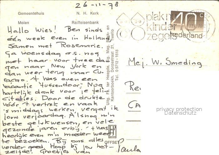 old postcard Twello Gemeindehaus Windmuehle Kirche postalisch gelaufen Erhaltung siehe scans