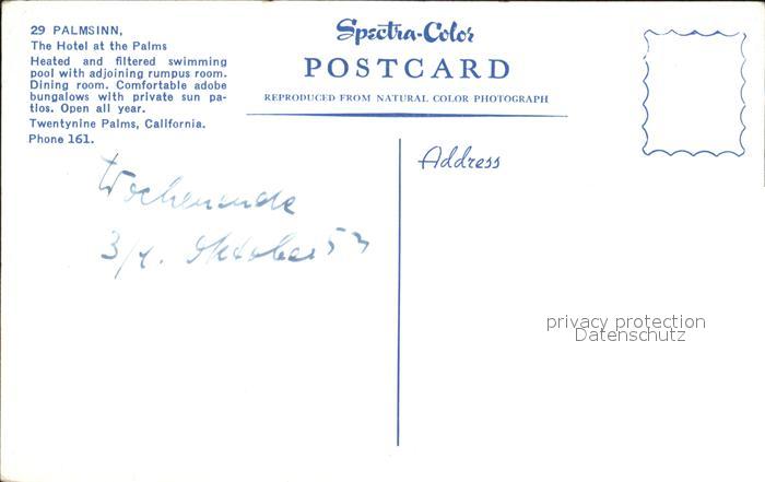 72415887 Twentynine Palms Palmsinn Hotel postalisch nicht gelaufen Erhaltung siehe scans KatCode: 14140050000000