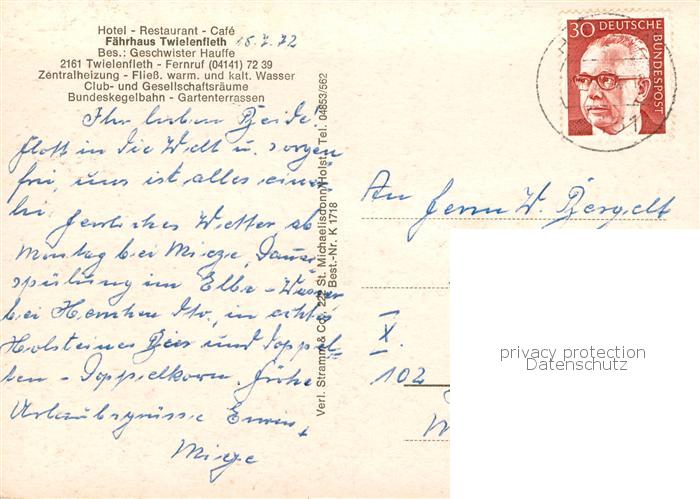 73796086 Twielenfleth Hollern Faehrhaus Twielenfleth Gastraeume Freiterrasse postalisch gelaufen Erhaltung siehe scans [WerneD78] alte Postkarte Wern Katcode 11110003359026