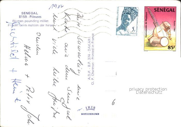alte Postkarte Typen Afrika Senegal Pileuses Frauen beim mahlen der Hirse postalisch gelaufen Erhaltung siehe scans
