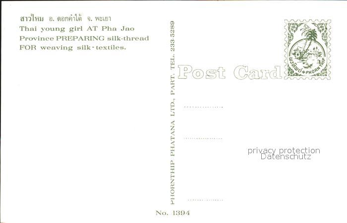 Typen Thailand Thai Young Girl AT Pha Jao preparing Silk-Thread postalisch nicht gelaufen Erhaltung siehe scans [PaolaD17]