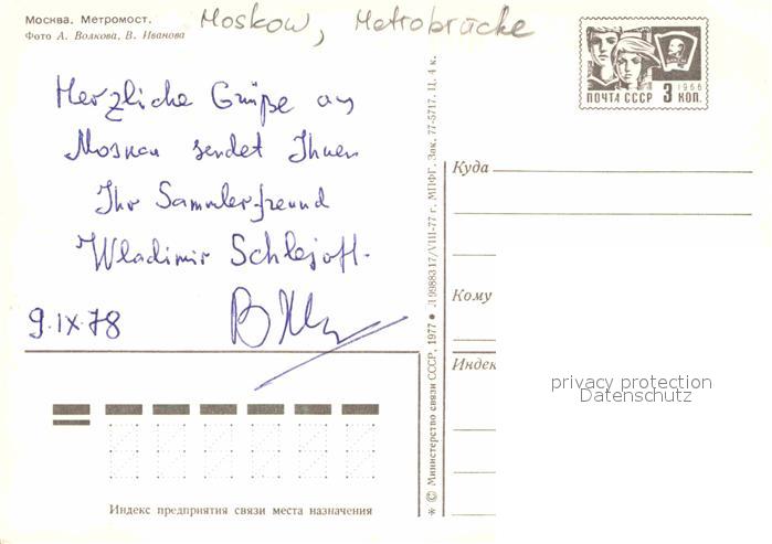 U-Bahn Subway Underground Metro Moskau Metrobruecke postalisch nicht gelaufen Erhaltung siehe scans [PaolaD17]